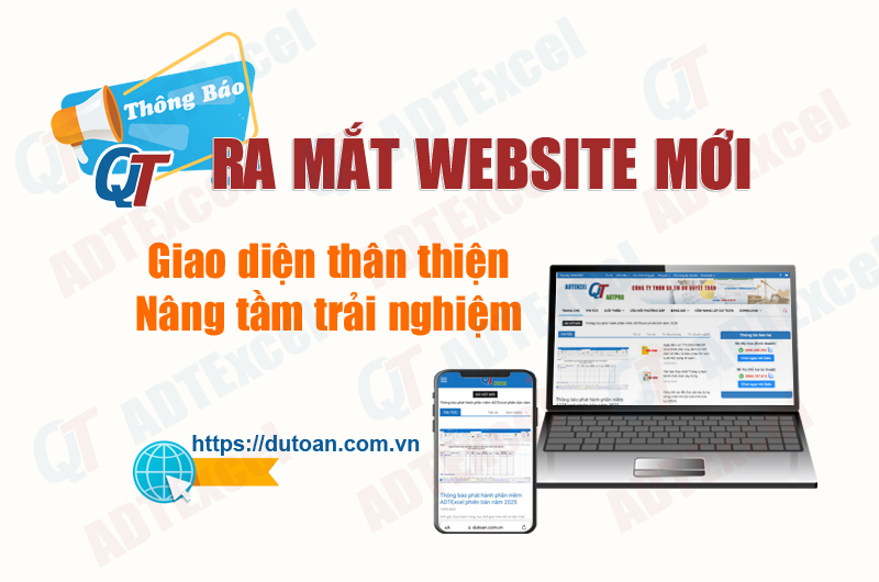 Công ty chúng tôi trân trọng thông báo: Website phiên bản mới được phát hành chính thức vào ngày 20 tháng 5 năm 2025 tại địa chỉ: https://dutoan.com.vn Việc ra mắt website mới nhằm mục đích nâng cao chất lượng dịch vụ hỗ trợ và trải nghiệm dành cho khách hàng đang sử dụng phần mềm ADTExcel.Xem chi tiết